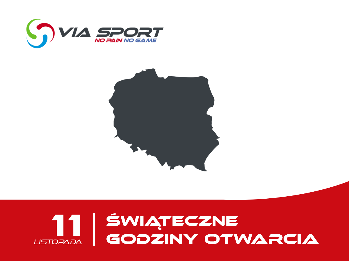 Informujemy, że 11 listopada 2020 kompleks Via Sport będzie otwarty w godzinach innych niż zwykle. Zachęcamy do zapoznania się z poniżej zamieszczonymi godzinami otwarcia.