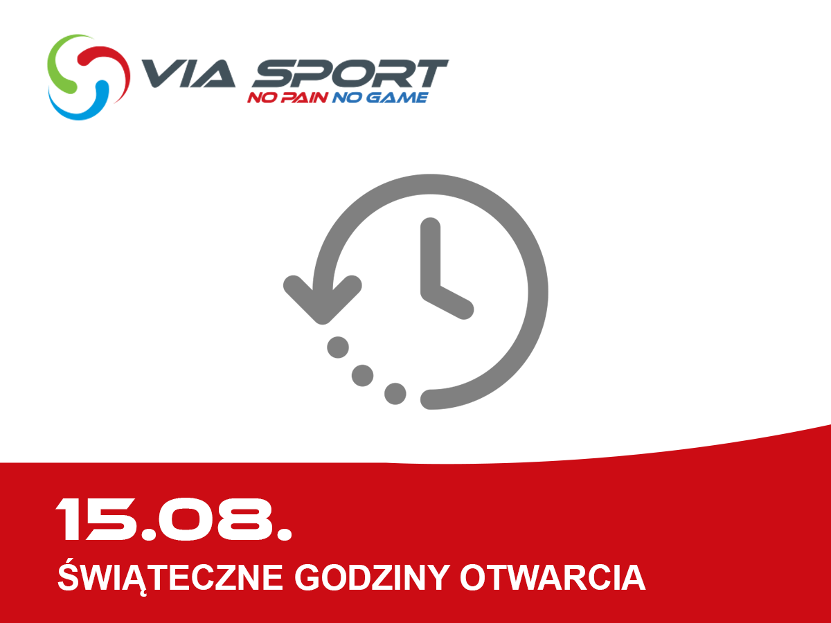 W dniu 15 sierpnia 2022 kompleks Via Sport będzie otwarty w innych niż zazwyczaj godzinach. Prosimy o zapoznanie się z obowiązującymi tego dnia godzinami otwarcia. Serdecznie zapraszamy do korzystania ze wszystkich naszych obiektów!
