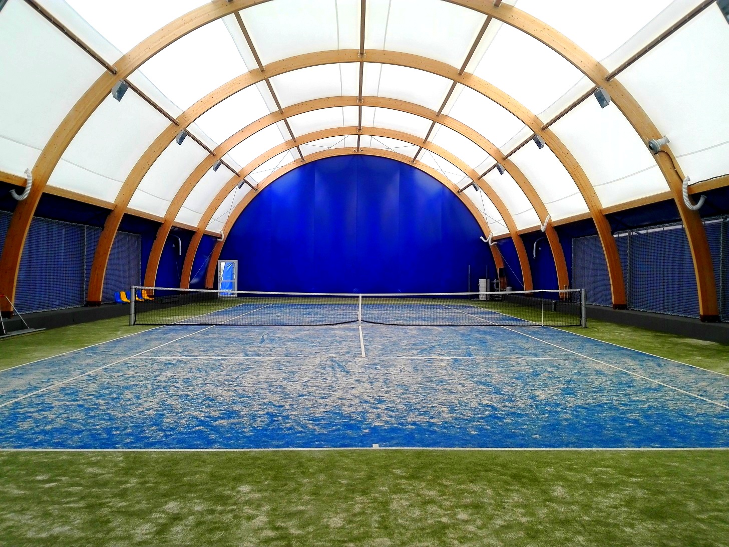 Nowopowstała kryta hala tenisowa Via Sport to niezwykle funkcjonalna konstrukcja z drewna klejonego, wyłożona sztuczną trawą marki Juta o powierzchni 18 m na 35 m. Nawierzchnia posypywana jest specjalnym piaskiem kwarcowym gwarantującym wysoką jakość parametrów odbijającej się w trakcie gry piłki oraz odpowiedni poślizg.