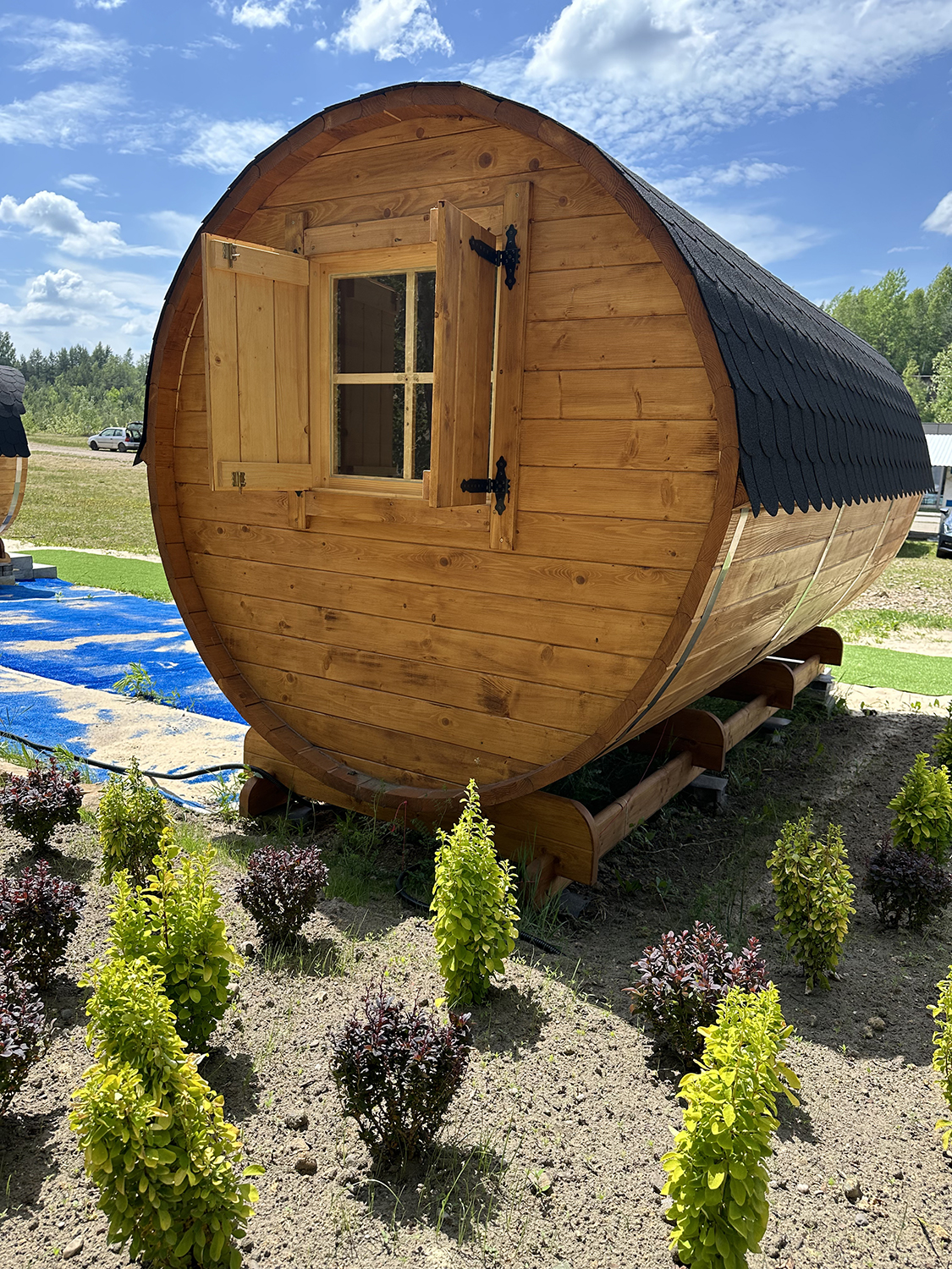 - Otwierane okienko na tylnej ściance z drewnianą zamykaną okiennicą.