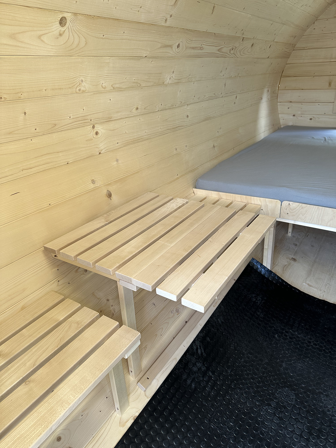- Komfort i wygoda: Wnętrze domku zapewnia komfort oraz wygodę. To przytulne miejsce do odpoczynku i relaksu po nurkowaniu, będące świetną alternatywą dla spania pod namiotem. Przestrzeń pod łóżkiem stanowi doskonały schowek na rzeczy osobiste.